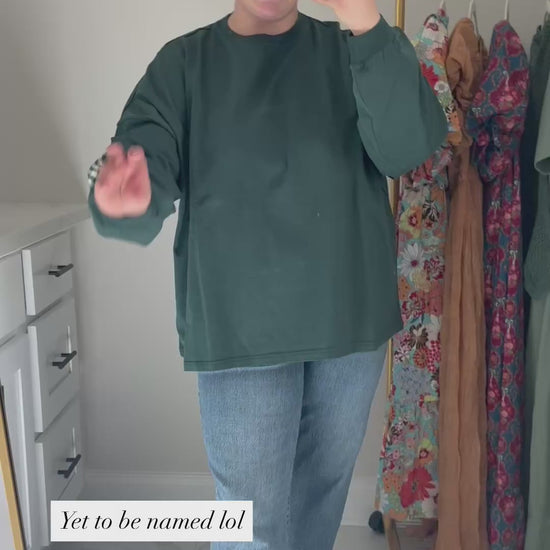 Meet your new go-to cozy classic. The Charlotte Heart Patch Top is crafted from 100% cotton and designed in a rich Hunter Green that flatters all seasons. Its charming heart patch detail adds the perfect touch of personality, while the intentionally oversized fit keeps things effortlessly comfortable and stylish. Soft, breathable, and easy to pair with your favorite denim or leggings, this top is made for everyday wear with a hint of sweetness.