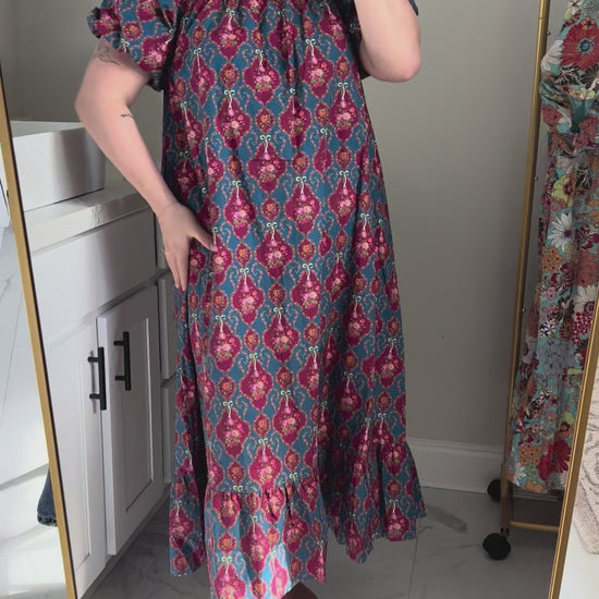 Effortlessly romantic and endlessly wearable, The Eliza Floral Maxi Dress is a timeless piece. Designed with a flattering square neckline and charming short puff sleeves, this dress exudes grace. The handy pockets add both practicality and style, while the flowing maxi length creates a beautiful, easy silhouette.